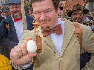 Od roku 2015 se z Velvar do Prahy vydává pěšky skupina vejconošů s nůšemi plnými vajec. V jejich čele i letos půjde starosta Velvar Radim Volák, který je zároveň předseda velvarského spolku Natvrdlých. „Cestou se k nim přidají další poutníci z okolních obcí a všichni se nakonec potkají v Praze u Malostranské věže odkud společně přejdou přes Karlův most na Křižovnické náměstí, kde slavnostně předají uvařená vajíčka purkmistrovi a Muzeu Karlova mostu.” přibližuje průběh akce ředitel muzea Zdeněk Bergman a doplňuje, že přes Karlův most, kromě průvodu s vejci, projede také koňský povoz, který bude doprovázen zbrojnoši a dobovou středověkou kapelou.