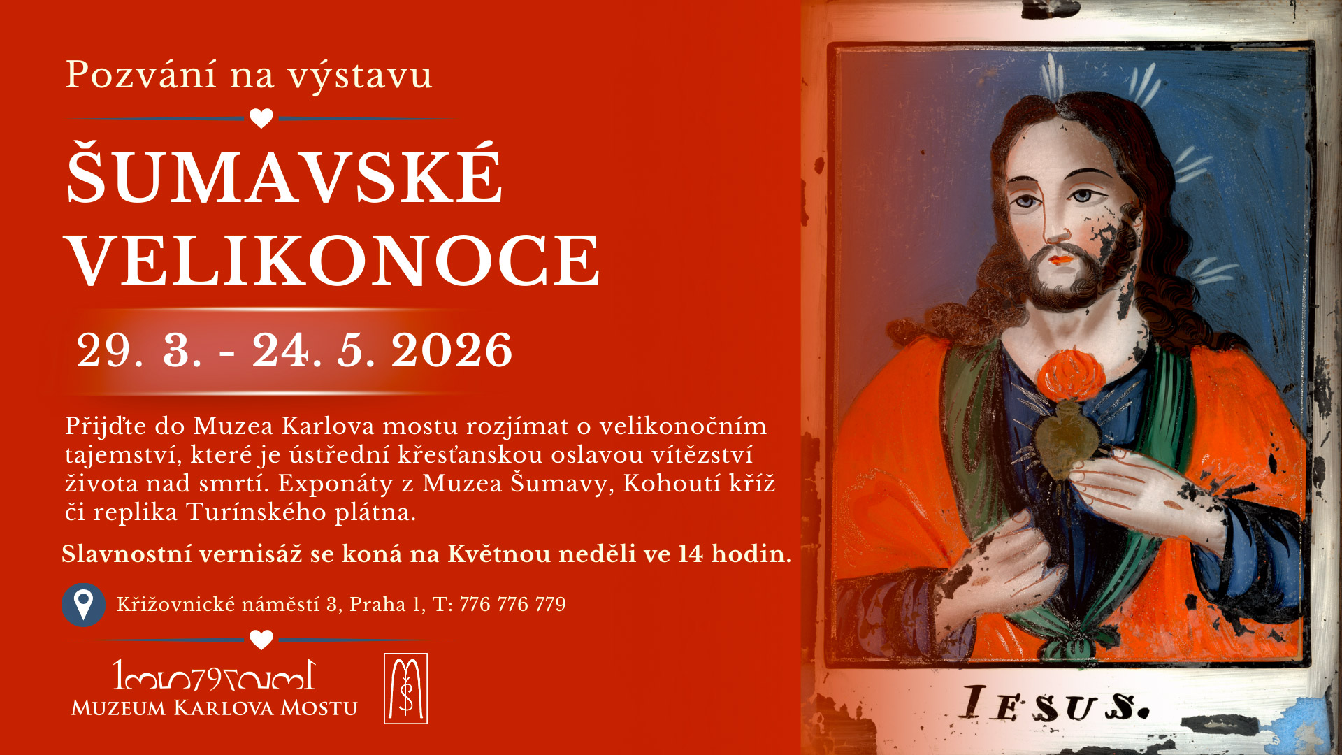 Na květnou neděli 29. března bude zahájena výstava v Muzeu Karlova mostu, která symbolicky otevírá Velikonoce a potrvá do 8. 6. 2026. V ceně vstupného na výstavu je i možnost návštěvy stálé expozice Muzea Karlova mostu, která podrobně pojednává o historii stavby Karlova mostu a o době vlády císaře Karla IV.